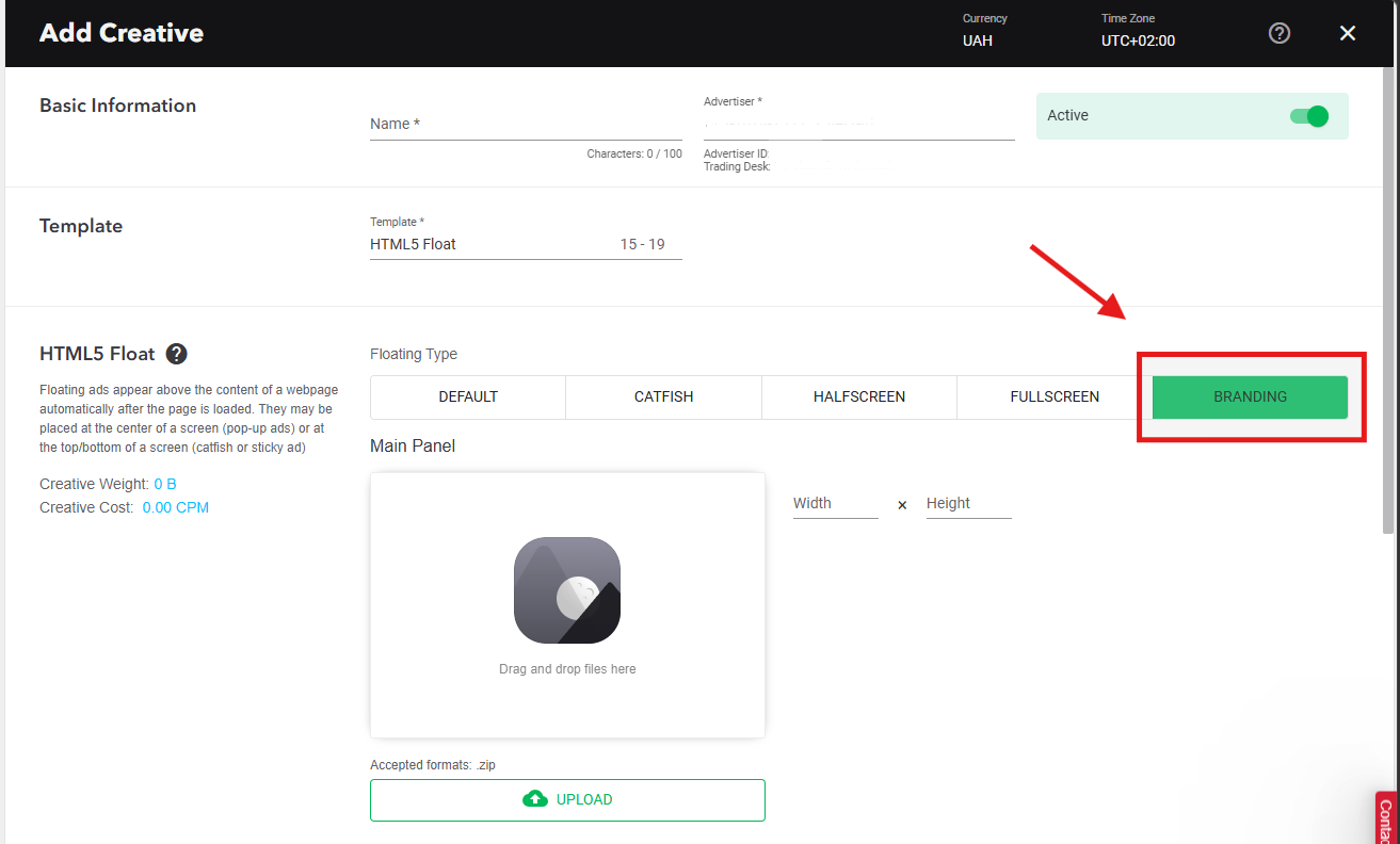 An ad format is a web page branding with HTML files as branding panels’ sources.